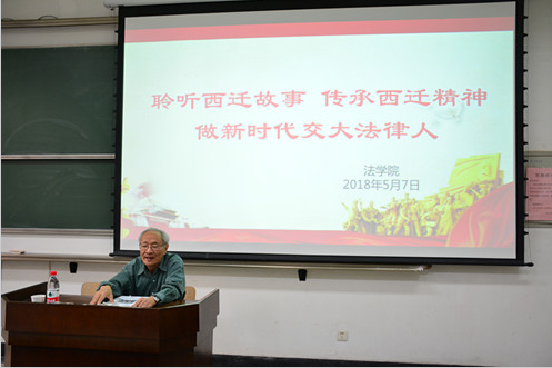 5月7日下午,原西安交通大学党委书记、全国人大常委会委员潘季教授应法学院邀请在主B105为学院师生带来题为“聆听西迁故事传承西迁精神做新时代交大法律人”的讲座。法学院单文华院长、王保民书记、李万强副院长、丁卫副院长出席了此次报告会。参会人员还有法学院本科生、研究生及全体教工。