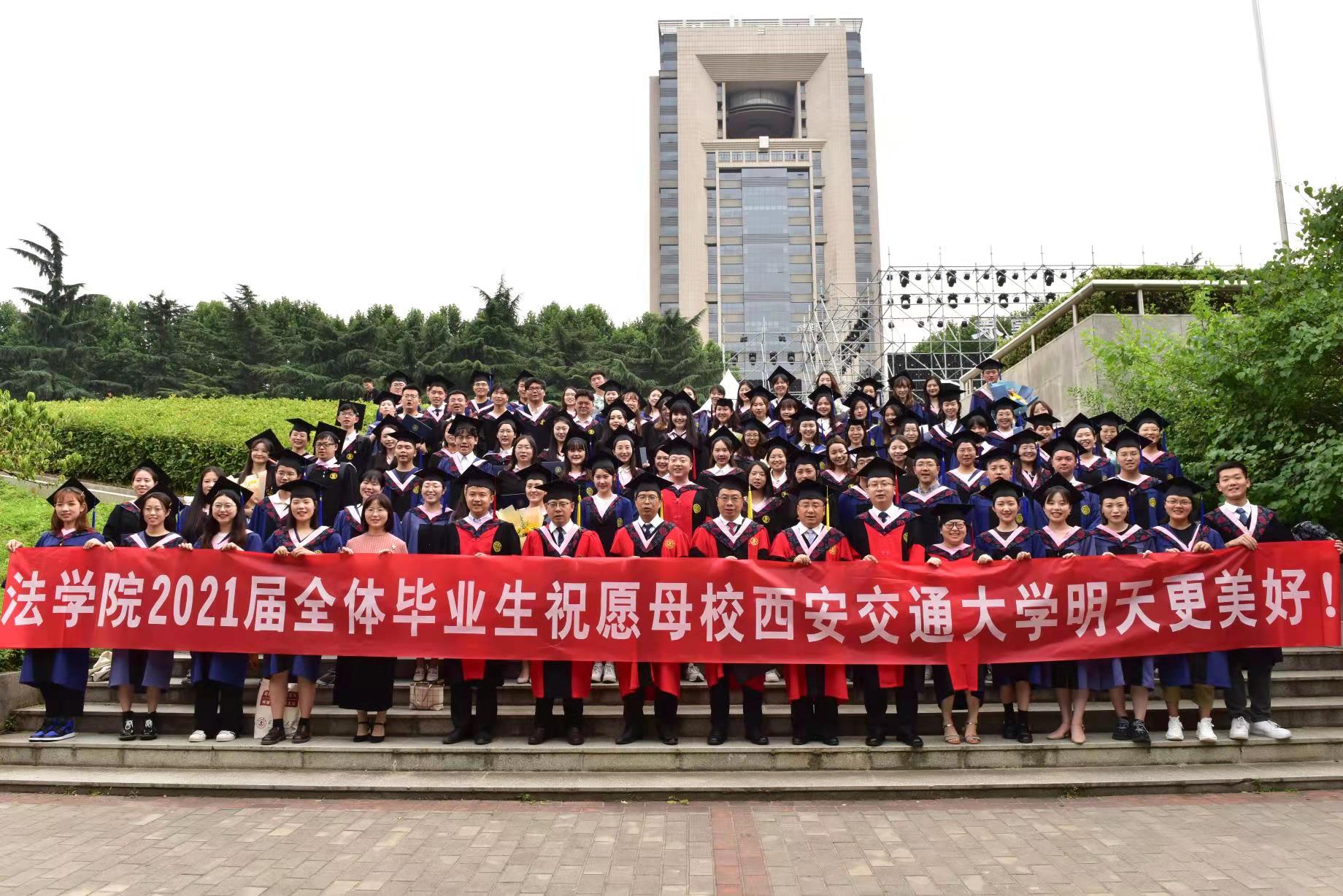 最后,全体毕业生齐唱交通大学校歌《为世界之光》。在室外合影留念时同学们高呼“法学院2021届全体毕业生祝愿母校西安交通大学明天更美好”!同学们依依不舍的声声祝福在四大发明广场久久回荡……