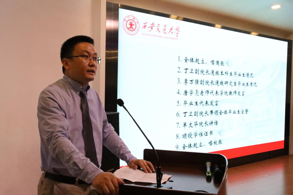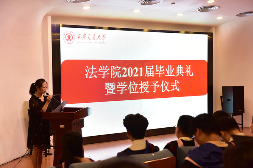 2021年7月3日下午,法学院2021届学生毕业典礼暨学位授予仪式在兴庆校区钱学森图书馆星空报告厅隆重举行。法学院院长单文华教授、书记王保民教授、副院长李万强教授、副院长丁卫副教授、文治书院院务主任王琦、法学院唐学亮副教授、李琳副教授和彭何利副教授出席并参加毕业典礼暨学位授予仪式。会议由法学院学生工作专职委员张乃钟老师主持。