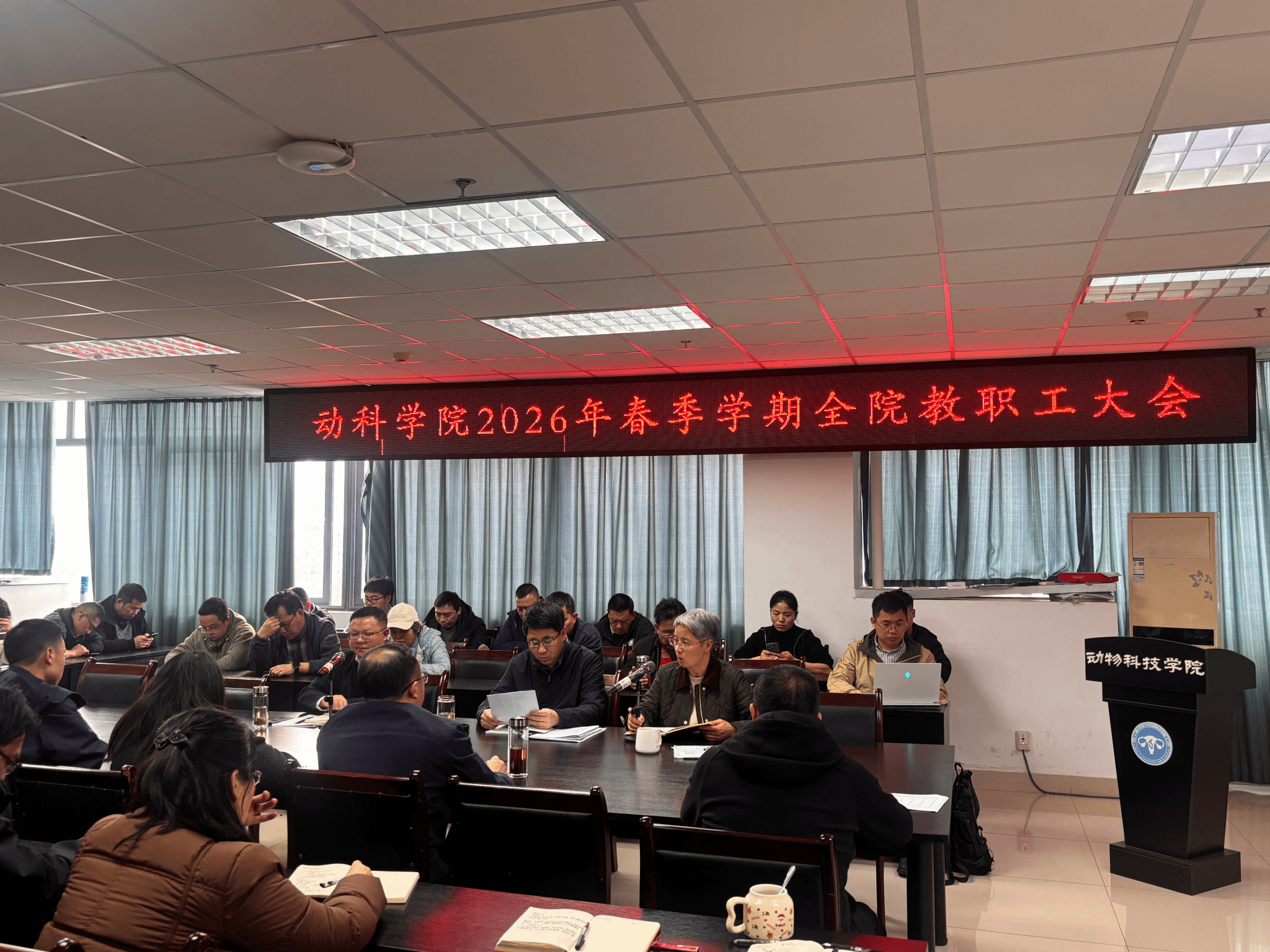 院长朱砺深入分析了当前学院发展面临的新形势与新挑战,他指出,新学期各项工作已全面启动,时间紧、任务重、要求高,全院上下必须切实增强紧迫感和责任感,以时不我待的精神状态投入到工作中。他强调,一是要全力抓好科学研究,特别是要精心组织、积极动员,力争在国家自然科学基金申报工作中取得新突破。二是要凝心聚力全力推进畜牧学一流学科建设,对标对表,补齐短板,强化特色。三是要持续优化本科专业布局,深化教育教学改革,提升人才培养质量。四是要高度重视并认真做好校庆相关工作,以此为契机凝聚校友力量,扩大学院影响。五是要稳妥有序地推进学院实验室和办公室搬迁事宜,确保各项工作平稳过渡。