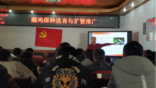 此次培训会以“藏鸡保种选育与扩繁推广”和“四川藏区藏鸡提档升级安全增效技术培训”为主题,得荣县周边养殖户和畜牧业相关从业人员60余人参会。在培训中,发放了相关技术手册,展望了今年非洲猪瘟行情下带来的家禽养殖的可观前景,讲解了藏鸡养殖技术,分析了得荣县的区域优势和2020年的家禽产业的详细行情。