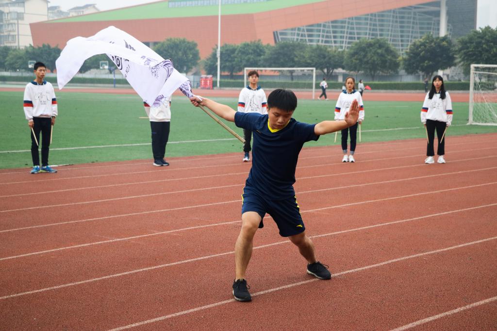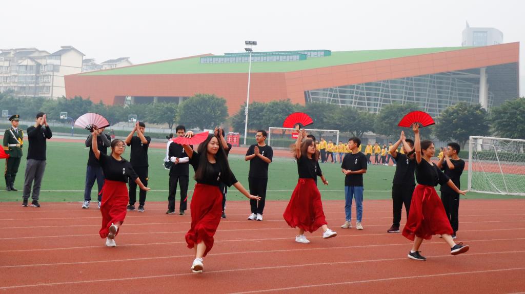 上午8:35,运动会开幕式正式开始,随着一声响亮的口号,国旗、院旗护卫队迈出了铿锵有力的步伐入场。11个新生小班伴随着运动员进行曲依次入场,整齐有序的队伍彰显了各小班良好的精神风貌,他们穿着独具特色的班服,喊着整齐响亮的口号,用创意的舞蹈展示出自己的风采。在庄严的升国旗仪式后,付瑞琼书记为本次运动会致开幕辞,感谢了为运动会提供大力赞助的四川驰阳集团,驰阳与学院有着良好的合作,是同学们实习实践、就业的好单位。随后裁判员代表和运动员代表进行了宣誓。