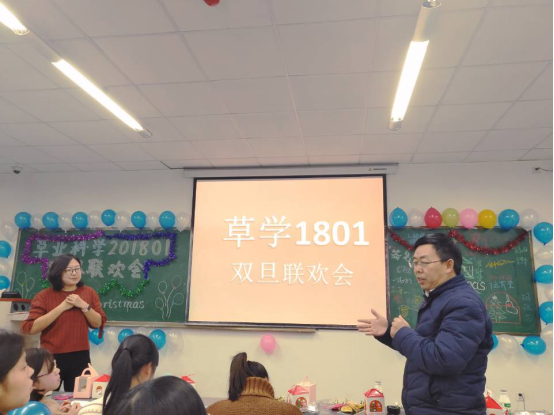12月25日,草学18级1班在四教B区602教室举行了“双旦”联欢会。晚会邀请了动物科技学院副院长张新全教授、草学系主任马啸教授作为嘉宾与小班同学一起欢庆佳节。