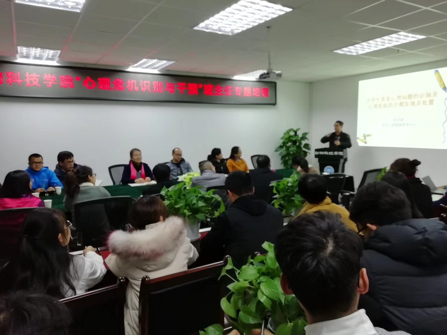 11月26日晚7点半,学院在7-1012举行“心理危机识别与干预”班主任专题培训,学生处心理健康教育中心主任欧居湖副教授担任主讲,全体在校班主任老师参加了培训,党委书记潘宏主持培训。