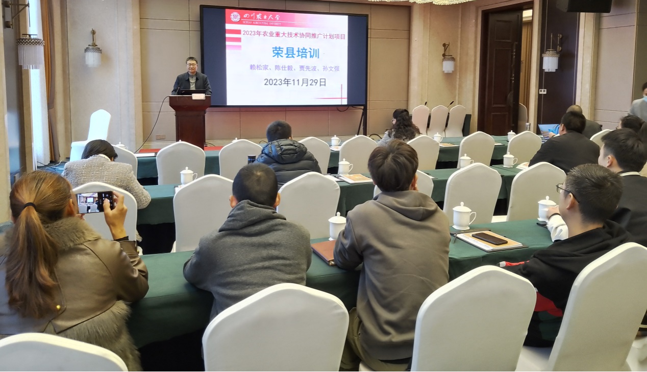 为进一步促进我省肉兔产业发展,提高肉兔养殖现代化水平,11月28-29日,动科学院联合四川省畜牧总站、四川省草原科学研究院和荣县农业农村局在自贡市荣县举办肉兔高效繁殖和饲养管理技术培训班。自贡市农业农村局、荣县农业农村局及其乡(镇)畜牧负责人及技术骨干、全县养殖户等100余人参加培训班。