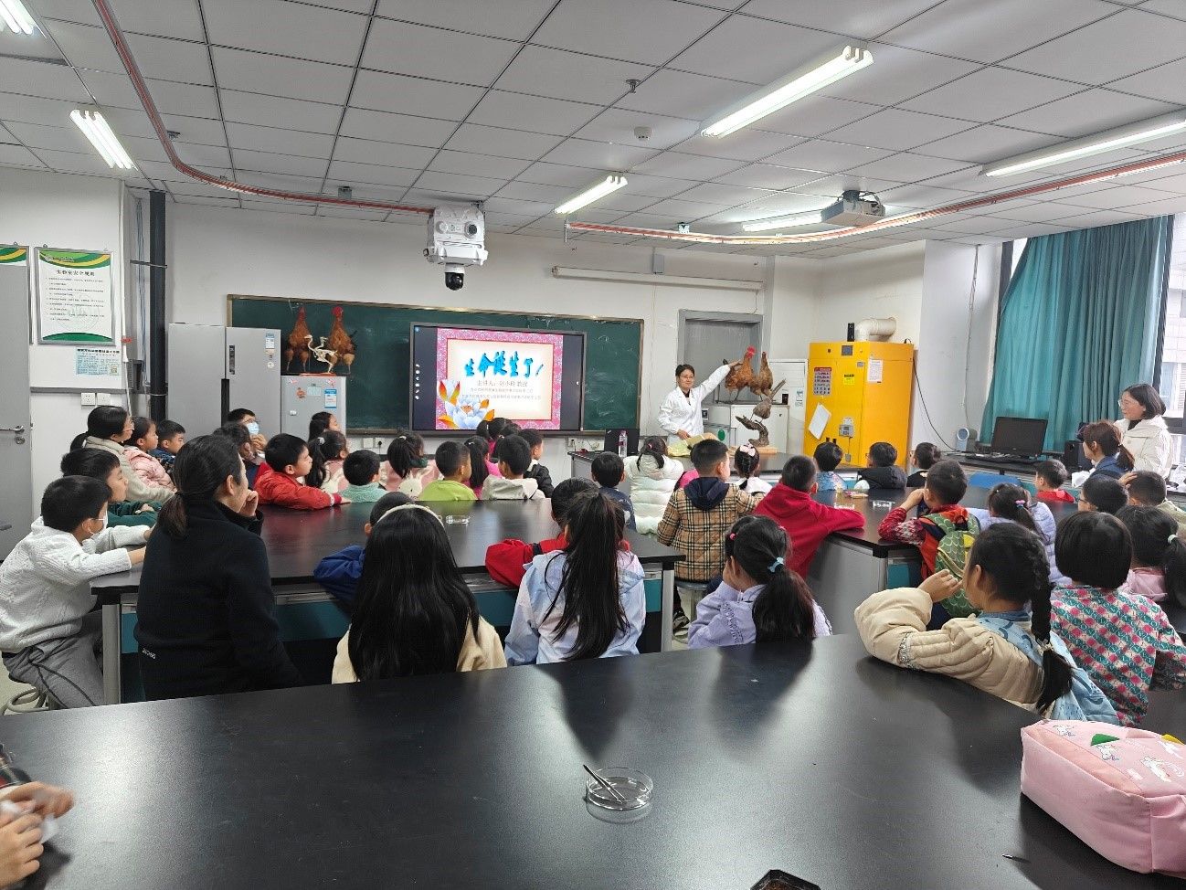 学院副院长赵小玲教授给大家带来了《小鸡出壳了》的科普报告,生动有趣的课堂让同学们深入了解了鸡蛋的种类、结构,小鸡孵化全过程等,同学们积极参与互动、动手实践,零距离感受生命科学奥秘与魅力。