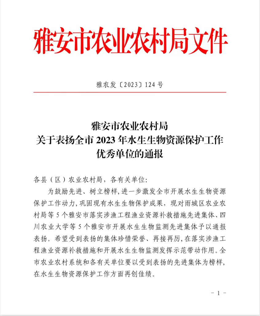 近日,2023年度四川省长江流域重点水域水生生物资源监测总结表彰暨2024年工作启动会在四川省水产局召开。四川农业大学水生生物监测团队获评雅安市2023年水生生物监测先进集体,动科院副院长杨淞、杜宗君和严太明三位老师荣获长江流域重点水域水生生物资源监测四川站先进个人。