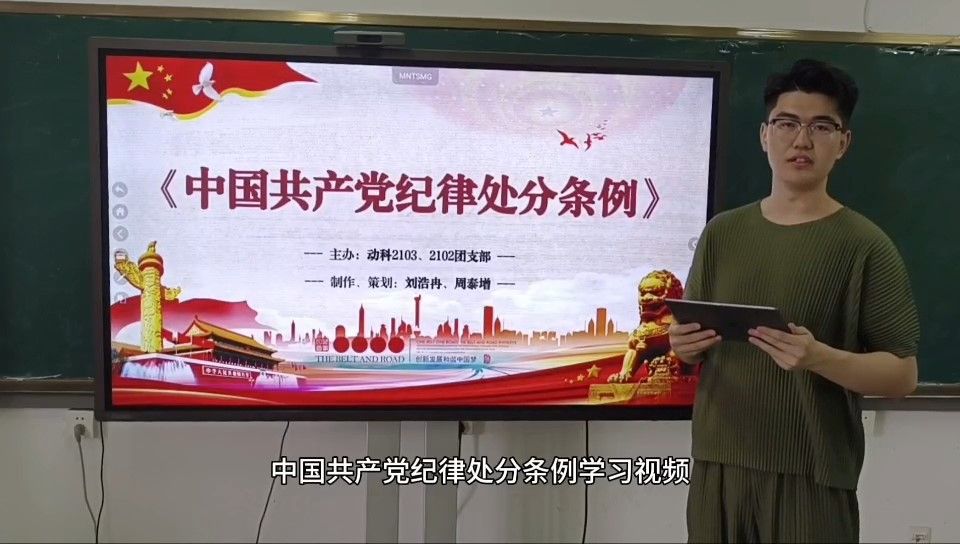 二是用好用活党团活动形式载体。学院各党团支部紧扣主题,以主题班团、主题党日等活动为载体,辅以短视频交流分享学习心得,有组织、互动式地开展《中国共产党纪律处分条例》学习,同时,各基层团支部充分发挥青年优势,结合“团支部进社区”活动,分赴温江惠民社区、合江社区、明光社区等地开展廉洁文化实践活动,青年与社区群众一道,以共同观看廉洁影片、分发学习廉洁知识普及传单、面对面交流等群众喜闻乐见的方式,弘扬正气清风,让廉洁之风吹进千家万户,植根于更多居民心中。动科2304团支部等多个支部开展“动科青廉说”主题宣讲10余场。