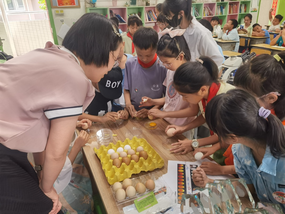 实验室的专家们主动走进温江区光华实验小学,开展以“科普进校园 共筑科学梦”为题的科学课。曾长军教授通过图文并茂的讲解,生动阐释了生命的奇迹-精子、卵子发育史,让同学们深刻感受、了解生命的起源。王彦教授以“萌鸡‘蛋’生鸡”为题,带领同学们学习了鸡蛋从产生到孵出小鸡的全过程。课后还给同学派发了“彩蛋”——让同学们利用简易孵化器、受精蛋、鸡蛋孵化手册和观察记录手册,自己动手完成鸡蛋孵化实验,亲自迎接生命的诞生