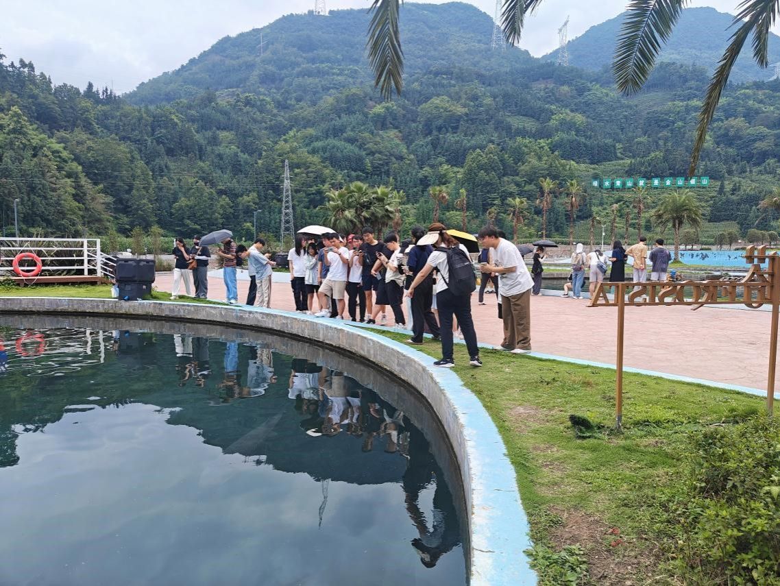 会前,学院水产养殖学专业2021级全体本科生在杨淞教授和陈德芳副教授的带领下,参观了天全县水产现代农业园区。通过近距离观察和园区工作人员的讲解,对集约化流水养殖模式、冷水鱼全产业链发展模式、鲟鱼养殖技术规范有了更深入的了解。