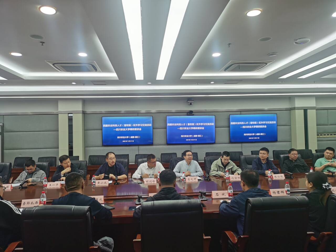 10月21日,西藏自治区农业农村厅组织全区17位畜牧科技人才赴四川农业大学开展学习参访和交流活动。我校乡村振兴学院、动物科技学院、动物医学院和动物营养研究所共14位教师代表参加交流座谈。会议由乡村振兴学院副院长胡剑锋主持。