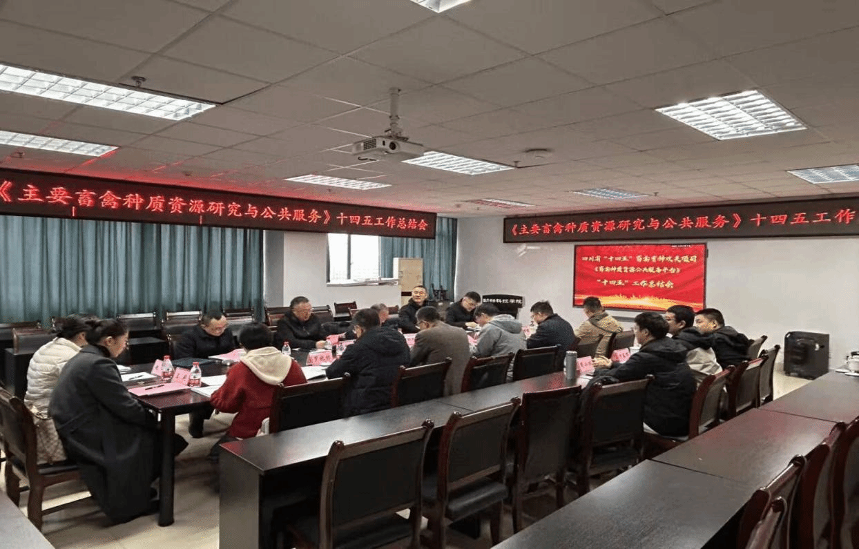 12月4日上午,由我院朱砺教授主持的四川省“十四五”畜禽育种攻关项目“主要畜禽种质资源研究与公共服务”项目总结会在成都校区顺利召开。四川省农村科技发展中心主任周华强,四川省农业科学院副院长杨武云,四川省畜牧总站副站长冯波,我校科技处副处长张沙秋,四川省草原科学研究院罗晓林研究员,学院李学伟教授莅临指导。课题负责人与课题骨干成员及参与研究工作的部分研究生近20人参加会议。会议由项目首席专家、院长朱砺教授主持。