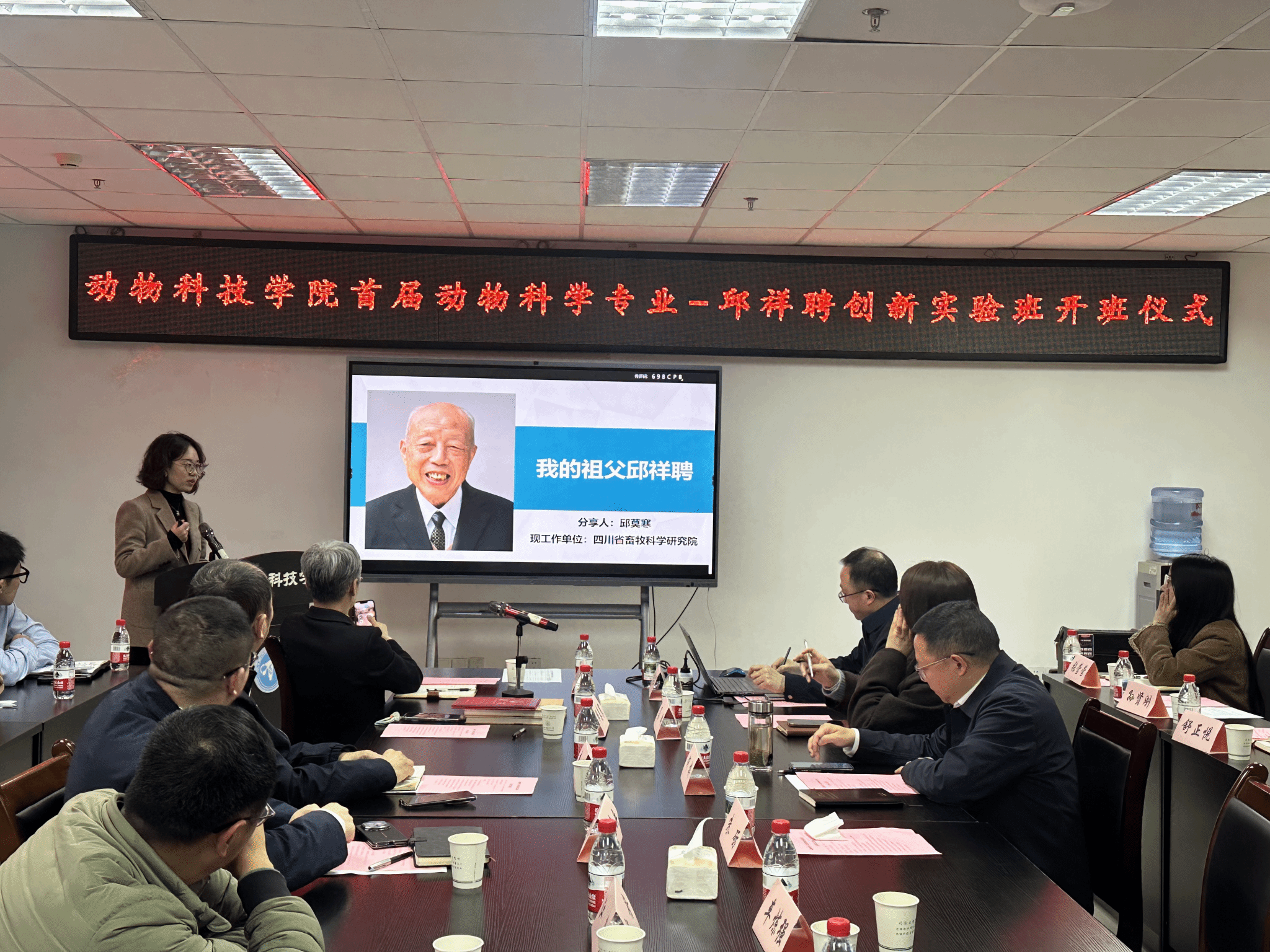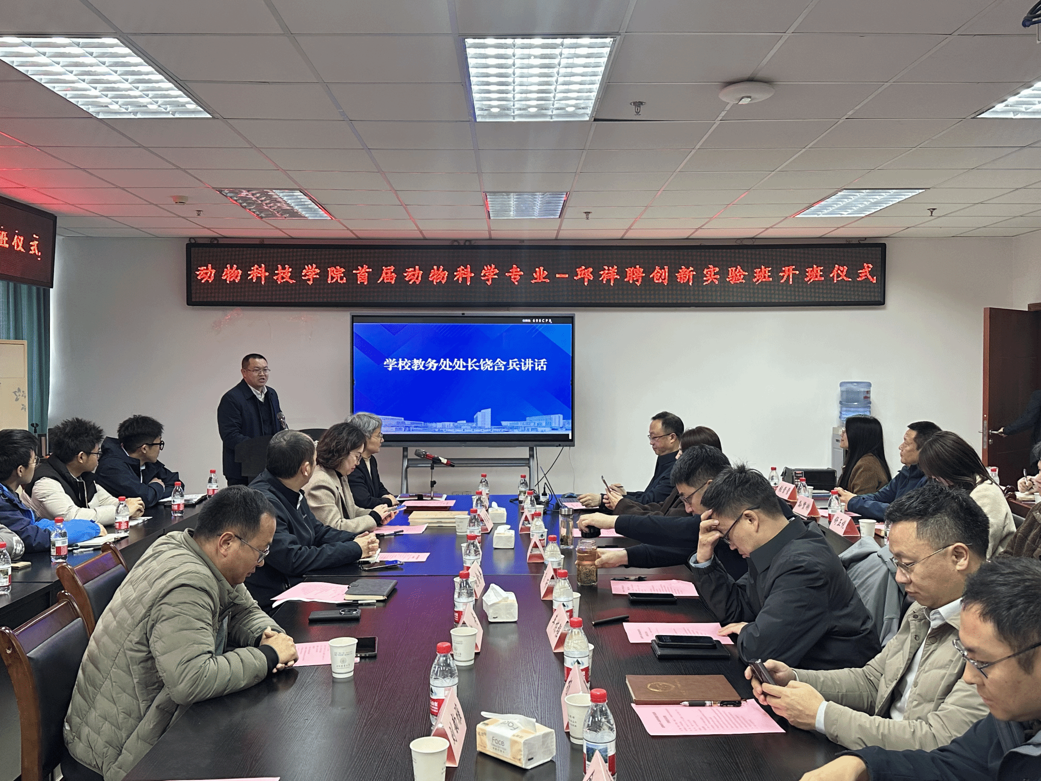 朱砺介绍了实验班的设立背景和建设思路。他指出,实验班旨在深化本科教学改革,聚焦现代畜牧业发展需求,依托学校、学院优势学科与资源,构建创新型本科人才培养体系,为行业高质量发展储备力量。