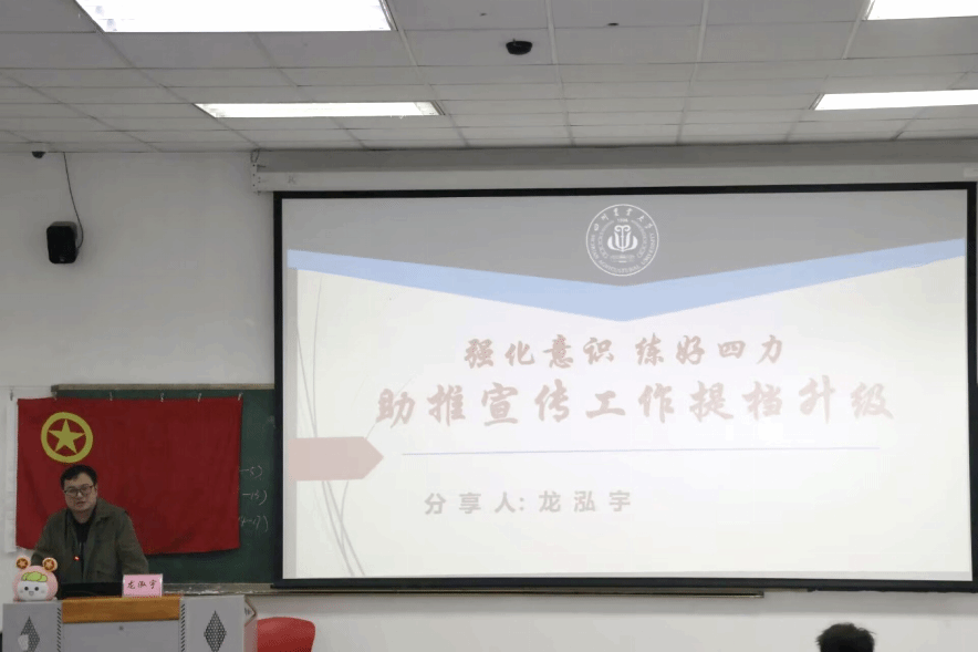 为助力学生干部提升新时代舆论素养与宣传工作能力,学院于3月24日下午在4A-103教室举办第八期团校暨学生骨干能力提升培训班第七讲。本次培训以“新时代学生干部舆论素养提升”为主题,特邀校党委宣传部新闻科科长龙泓宇老师主讲。