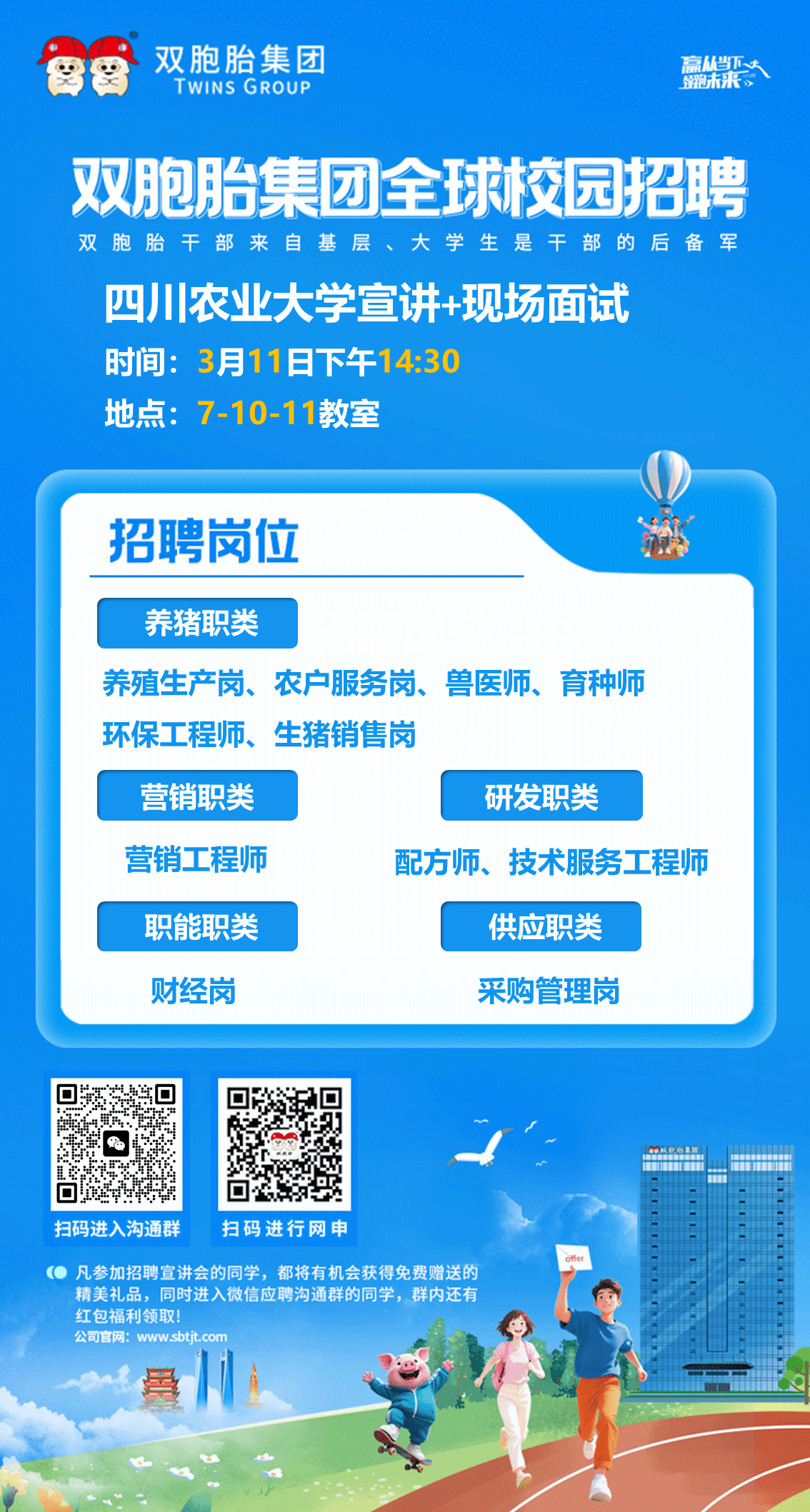 双胞胎集团现面向四川农业大学开展全球校园招聘,宣讲 + 现场面试同步进行,诚邀优秀学子加入。