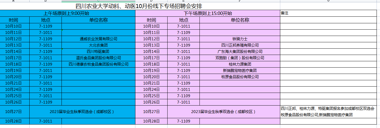 动物科技学院2023届毕业生企业专场校园招聘会统计表(10月)