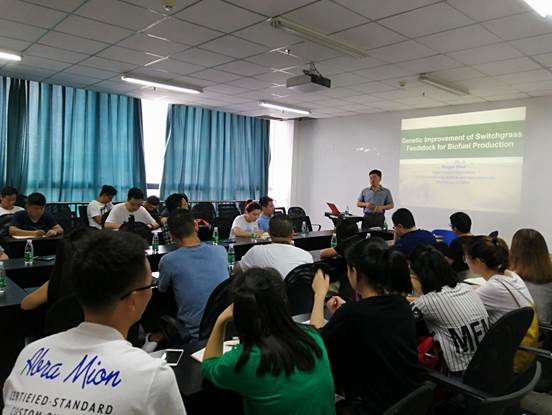 报告会上,赵炳宇副教授从柳枝稷研究的起源、提高柳枝稷优势、柳枝稷抗盐基因分析及转基因技术进行了介绍。依托个人研究方向为主导线,重点阐述了柳枝稷的生物学及遗传学特征、通过基因改造改善柳枝稷细胞壁结构、通过评估和收集自然种质资源构建新的柳枝稷遗传连锁图谱、鉴定柳枝稷抗盐相关基因。报告会上,师生们结合饲用高粱褐色中脉、木质素与植物抗逆相关性、植物病理等方面进行了互动和交流,师生们收获颇丰。动物科技学院草学系、玉米所、水稻所相关师生参加了报告会和交流。