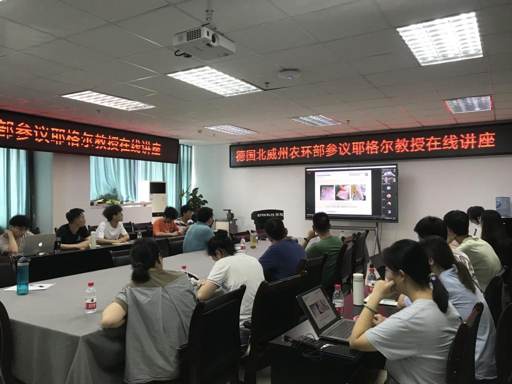 7月13日下午,受动科学院邀请,德国北威州农环部参议耶格尔教授通过腾讯会议开展了题为“Swine Inflammation and Necrosis Syndrome(猪炎症和坏死综合征)”的学术讲座。讲座由动科学院院长朱砺教授主持,60余名师生聆听了报告。