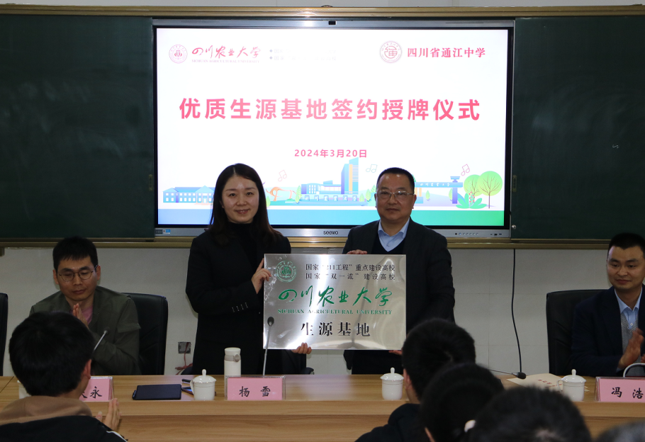 为贯彻落实学校《新高考改革招生宣传三年行动计划》,稳步提升我校生源质量,3月20日-21日,动科学院党委副书记杨雪率领专业教师、招生专员分别走访四川省通江中学、平昌中学和南江县长赤中学,举行优质生源基地签约和授牌仪式,并面向三所中学近400名师生展开招生宣讲。