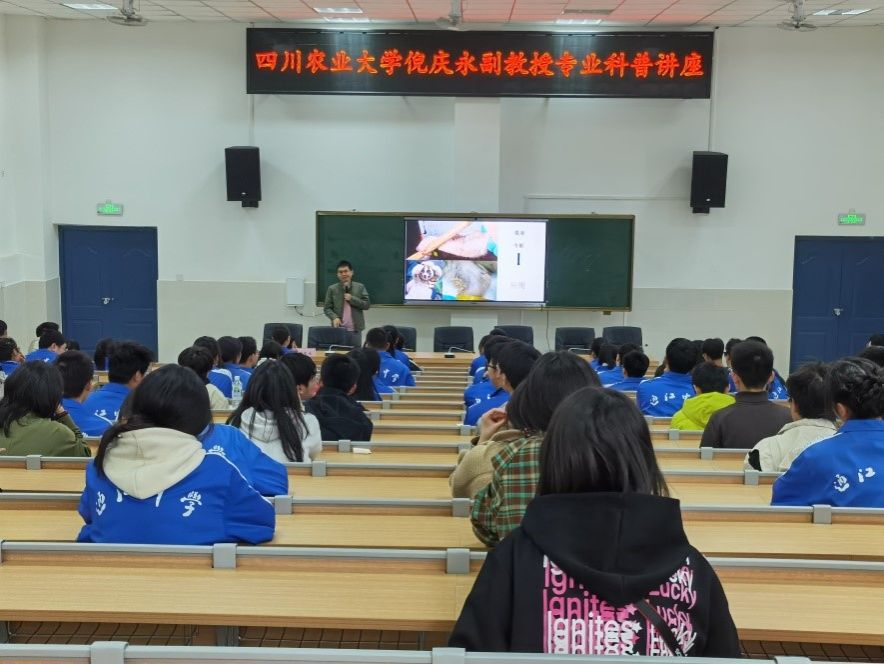 在与通江中学签约授牌仪式上,通江中学党委书记向英才对杨雪一行的到来表示热烈欢迎,并就学校历史沿革、办学特色及育人成效等情况作简要介绍。杨雪代表学校与向英才签订了优质生源基地建设协议并授牌。随后,动物科学系倪庆永副教授以“动物科学-理想与现实的结合”为题,结合自身科研方向与育人经验,为通中学子分享了坚持不懈不断逐梦的故事,激励通中学子勇敢寻梦、积极追梦,方能抵达梦想彼岸。