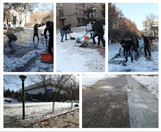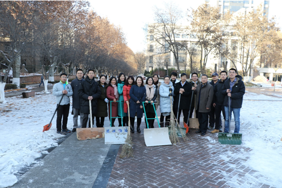 2018年1月8日下午,法学院教工博士联合党支部召开组织生活会开展党员民主评议工作。会后,党员们在支部的倡议下纷纷走向户外积极清扫校园主楼西南角道路上的积雪。