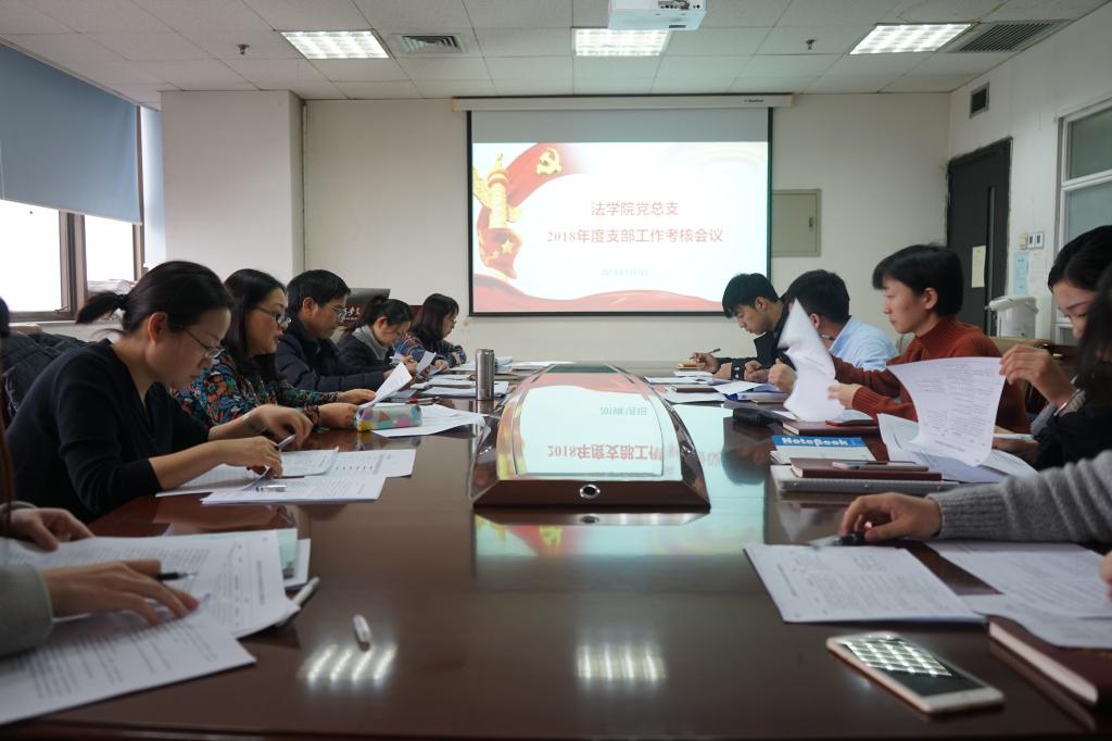 2019年1月3日下午,法学院党总支在主E-910会议室召开支部工作考核会议,7个支部书记围绕2018年度党建工作向党总支述职。法学院党总支委员、各支部委员、党小组组长参加了此次会议。