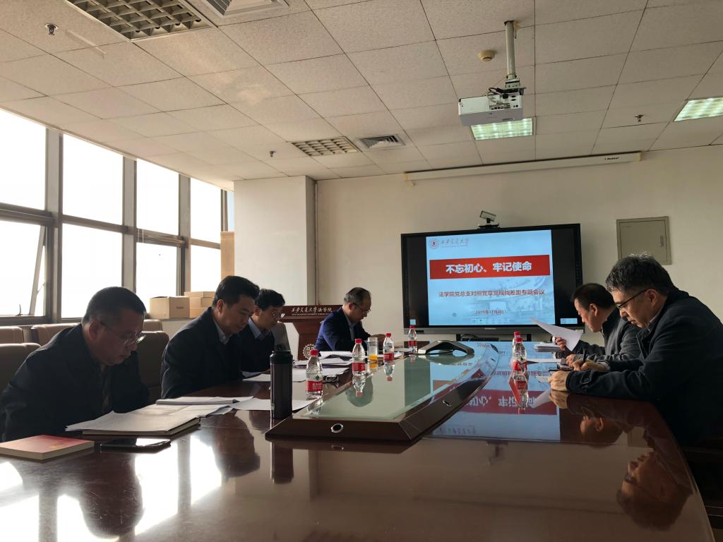 2019年11月4日下午,法学院党总支召开对照党章党规找差距专题会议。学校“不忘初心、牢记使命”主题教育第十二指导组组长康金勇、联络员贾海涛、法学院领导班子成员参加会议。