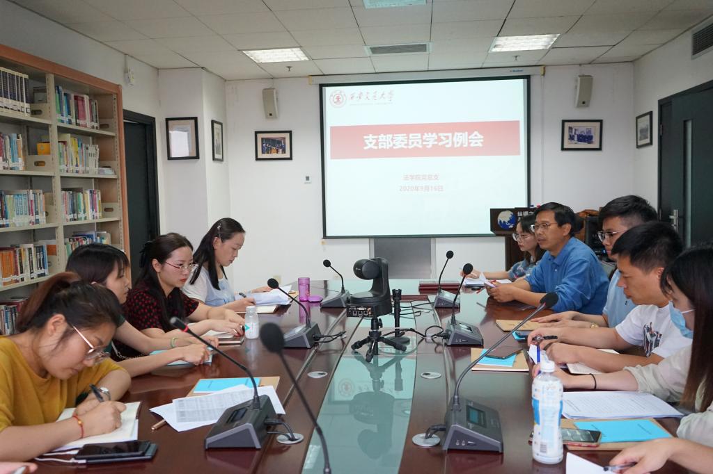9月16日下午,法学院党总支组织教工支部委员举行学习例会,集中学习习近平总书记在科学家座谈会上的重要讲话,再次学习校党委组织部《关于开展好2020年党支部组织生活的通知》,研究部署新学期支部工作。法学院党总支书记王保民出席会议。