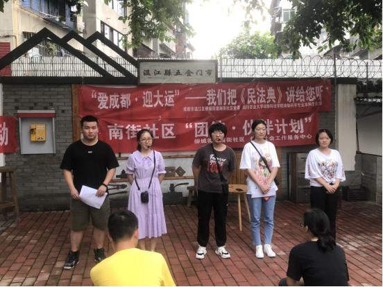 “普法在行,与民同行”实践队伍与温江区柳城南街社区合作,开展“我们把民法典讲给您听”系列活动,针对民法典中与社区生活密切相关内容进行宣讲,采用真实案例与情景剧还原结合的方式为社区居民带去生动有趣的民法典讲解。实践队伍还分别对社区居民及社区党员进行了民法典了解程度的调查问卷,了解对比党员对民法典的掌握程度,发挥党员先锋模范作用,带领群众进行民法典的学习。