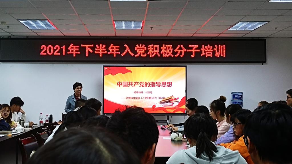 为学习贯彻习近平总书记在庆祝中国共产党成立100周年大会上重要讲话精神,扎实推进党史学习教育,增强其党性修养,确立为共产主义事业奋斗的信念。2021年10月9日,动物科技学院2021年下半年第一次入党积极分子培训课于七教1011会议室顺利开展。本次党课共有四个专题,动物科技学院、草业科技学院和动物营养研究所共71名入党积极分子参加本次专题培训。