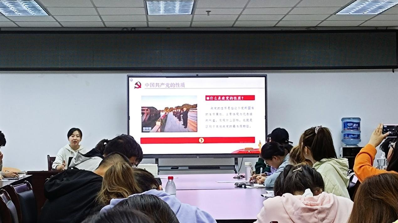 第一个专题开始,马骢毓老师围绕中国共产党的性质、宗旨、和组织原则等内容进行了详细地讲解。她阐明了中国共产党的宗旨是全心全意为人民服务,增强党的宗旨意识是共产党员的终身课题,并着重强调了在党的组织原则面前人人平等。课中,老师强调今年是中国共产党成立100周年,各位学员应该牢记历史,不忘初心,努力为全面建成社会主义现代化强国的第二个百年奋斗目标贡献力量。最后,老师希望全体入党积极分子从此刻起增强为人民服务的意识,自觉学习党史党章,不断提高思想政治觉悟,以党员标准严格要求自己,积极向党组织靠拢。