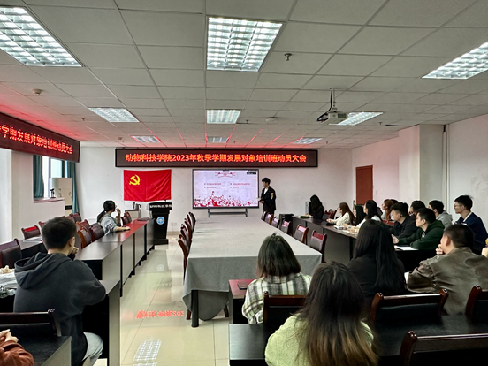 10月20日下午5点,由动物科技学院党校工作办公室承办的2023年秋季学期发展对象动员大会于7教1011教室顺利召开。动物科技学院党委办副主任、团委副书记舒正悦,党校工作办公室相关负责人、辅导党员及36名党校学员参加本次会议,会议由党校工作办公室靳雨果主持。