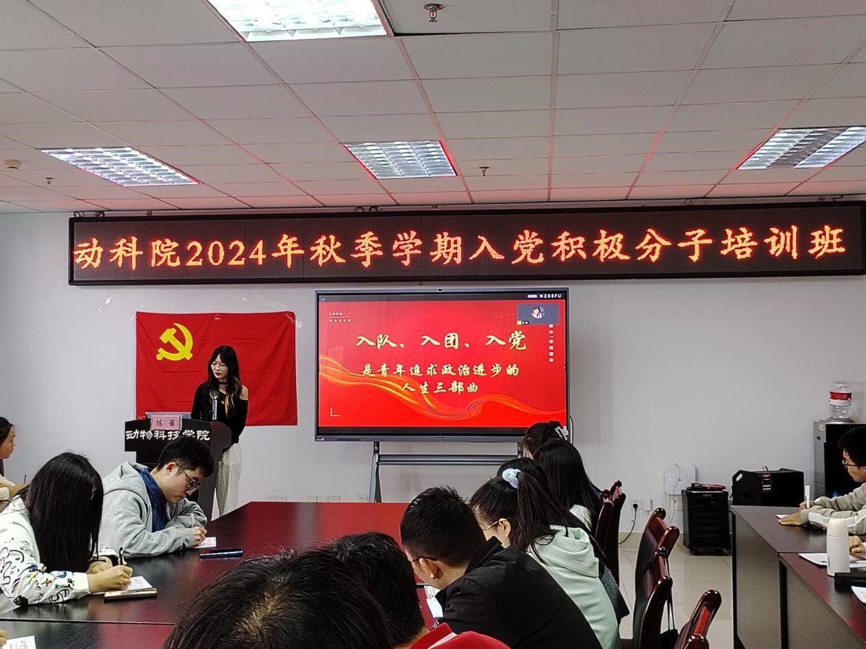 院工会副主席孙文强以“动科人述动科事”为题,结合亲身经历为入党积极分子从使命、责任两个部分开展讲述。他谈到党员身上肩负着三个责任,一是要持续学习与提升,紧跟新时代科技发展步伐,进一步加强专业素养;二是要树立国际视野,结合国情省情推动农业农村发展;三是把弘扬科学家精神和党的伟大精神有机结合起来,在理论学习和实践过程中守初心、担使命、作贡献。