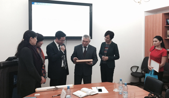访问期间,代表们拜访了吉尔吉斯国家议会。议会国际委员会负责人接见我校代表并表示:中吉两国友好源远流长,高校之间的合作是促进国家友好交流的重要途径。11月19日下午,代表团主要成员拜访哈萨克斯坦教育部。该部高等教育司负责人介绍了哈国高等教育发展现状,对我校与欧亚大学即将开展的联合办学项目高度赞赏,认为其富于前瞻性、开创性,表示一定予以大力支持。