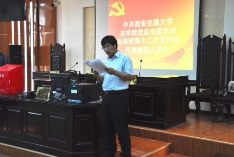 大会在庄严的国歌声中隆重开幕,王保民副书记介绍了中共西安交通大学法学院党总支出席校第十二次党代会代表名额、人员构成及产生过程。法学院党总支出席西安交通大学第十二次党员代表大会的候选人预备人选共3名,均由学院各支部充分酝酿提名,由法学院党总支集中大多数党员的意见提出候选人建议名单,报学校第十二次党代会代表资格审查小组审定通过,提交大会选举。选举过程中,全体党员代表严格按照选举办法采取无记名差额选举,经认真填写选票,庄严投票,74名党员选举产生了参加学校第十二次党代会的2名代表。