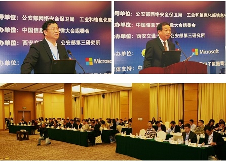 本次大会由西安交通大学校长郑南宁院士担任组委会名誉主席。公安部网络安全保卫局副局长袁旭阳、公安部第三研究所所长胡传平,工信部信息安全协调司综合处处长胡啸,西安交通大学法学院党委书记彭沪生,内蒙古公安厅网络安全保卫总队总队长刘捷,上海市公安局网络安全保卫总队政委柳立出席大会。公安部第三研究所副所长周左鹰主持了大会开幕式。
