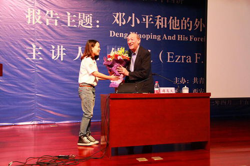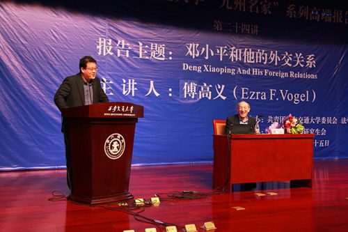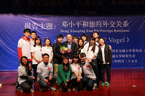 4月25日,由校团委和法学院共同主办的西安交通大学“九州名家”高端论坛专场报告会第二十四讲在主楼多功能报告厅举行,邀请美国哈佛大学亨利·福特二世社会学荣休教授、费正清东亚中心前主任、《邓小平时代》作者傅高义(Ezra F. Vogel)教授与西安交大师生分享“邓小平和他的外交关系”。党委书记王建华出席报告会并为傅高义先生赠送纪念品。报告会由法学院王江雨教授主持。法学院2074、2113班党支部全体成员担任会务工作。
