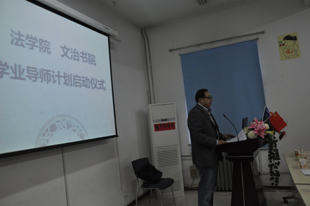 在学业导师计划启动仪式上,法学院党总支书记彭沪生老师首先致辞,他强调了在双院制下,实施法学本科生学业导师制度对人才培养工作的重要性。其次,王保民副院长详细介绍了实施法学学业导师制度的背景,他指出,此次实施法学本科生学业导师制度,目的在于促进学院在专业上给予学生最大的指导,加强其课外专业学习,培养其专业兴趣,提高学生的专业认同感和自豪感。其后,他还对各年级学业导师分配情况、学业导师运行方式做了说明。最后,文治书院常务院务副主任张爱萍老师对实施本科生学业导师制度的必要性及相关内容做了进一步强调。