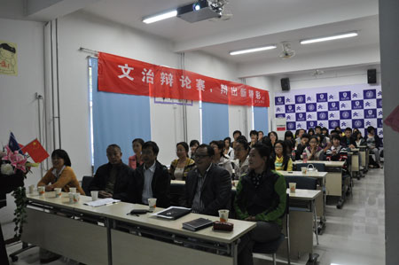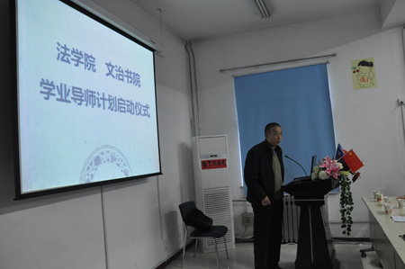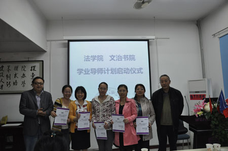 2011年10月14日下午4:00,由法学院与文治书院联合开展的“学业导师启动仪式暨法学专业学业分析报告会”在文治书院报告厅举行,法学院党总支书记彭沪生老师、法学院副院长王保民教授、院长助理吉兰湘老师和文治书院常务院务副主任张爱萍老师、院务副主任郭小平老师参加了会议。法学院各年级学业导师、法学院两个教务员老师、文治书院各年级辅导员老师以及法学院全体本科生也参加了会议。会议由文治书院任欣老师主持。