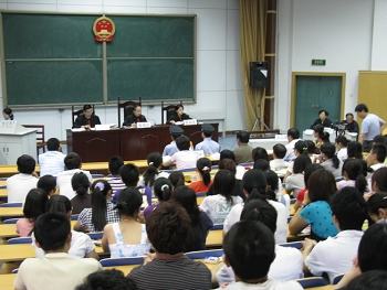应西安交通大学法学院邀请,陕西省高级人民法院刑事审判庭于2009年6月11日,在西安交通大学德育教育基地,就被告人王某故意杀人、抢劫案进行第二审公开审理。法学院组织全体博士生、研究生、本科生旁听庭了此次教学实践活动。省人大代表、政协委员也参加了此次公开审理。