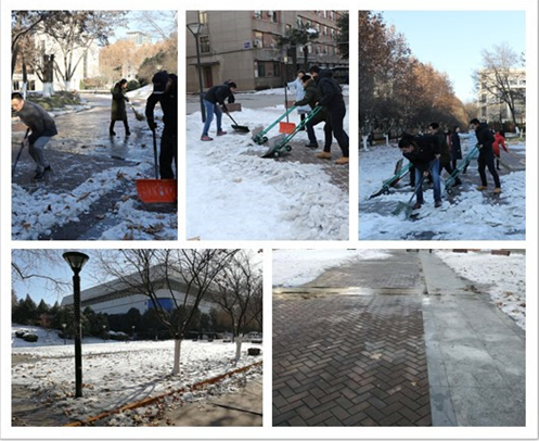 2018年1月8日下午,法学院教工博士联合党支部召开组织生活会开展党员民主评议工作。会后,党员们在支部的倡议下纷纷走向户外积极清扫校园主楼西南角道路上的积雪。