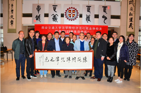 最后,所有参会人员一起拍照留念,纪念这珍贵的时刻。大家共同祝愿交大建校122周年快乐!祝愿交大的明天更美好!祝愿法学院更上一层楼!
