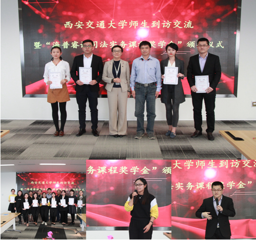10月17日下午,西安交大法学院马治国教授带领三十四名法学与法律硕士研究生前往海普睿诚律师事务所学习交流,并与律师事务所业务部门主任、合伙人、行政总监及客户主管就实务经验、职业规划等问题进行了深入座谈交流,并为上一届该课程成绩优秀的学生颁发了“海普睿诚司法实务课程奖学金”。