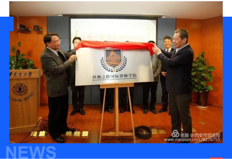 11月30日,为落实省委常委、市委书记王永康同志的重要批示精神,西安市司法局联合西安交通大学成立“丝绸之路国际律师学院”并举行了揭牌仪式。该学院的成立,旨在为西安市,乃至全省、全国培养适应“一带一路”建设需要的国际化、应用型法律人才。西安交通大学副校长席光、法学院院长单文华、党支部书记王保民、副院长李万强,市司法局党组书记陈松林、局长张华俊以及相关工作人员和律师代表参加了揭牌仪式。