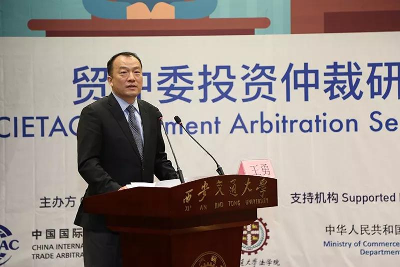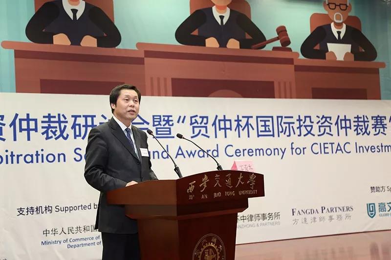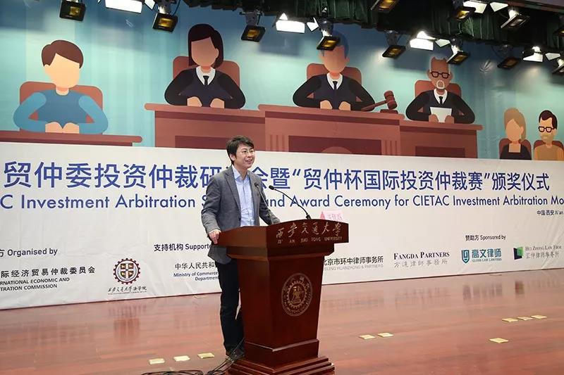 投资仲裁赛后,西安交大法学院与贸仲委共同举办了贸仲委投资仲裁研讨会。商务部条法司为本次投资仲裁赛和研讨会的支持机构。西安市人民政府副市长王勇、贸仲委副主任兼秘书长王承杰、商务部条法司投资处副处长王优酉、西安交大法学院院长单文华、西安贸促会会长龙晓华出席会议。研讨会上,来自国内外的投资仲裁领域专家、学者和律师对投资仲裁的程序性争点进行评述,结合国际投资仲裁的著名案例分享实务经验,介绍了包括对仲裁请求的先期驳回和第三方资助在内的热点话题。
