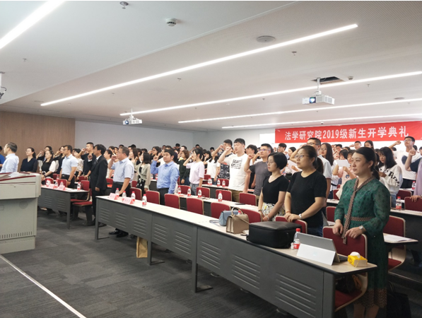 法学院党委书记王保民、副院长李万强、副院长丁卫,教师代表以及学院教师等参加开学典礼,共同见证法学院全体新生正式加入法学院的历史性时刻,法学院学生工作专职委员张乃钟主持开学典礼。