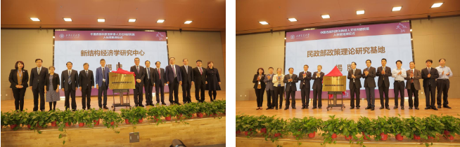 入驻仪式中揭牌成立了“新结构经济学研究中心”与“民政部政策理论研究基地”两家科研合作基地(中心)。新结构经济学研究中心是西安交通大学经济金融研究院与林毅夫教授担任院长的北京大学新结构经济学研究院合作成立的高端智库机构。民政部政策理论研究基地是民政部在西安交通大学公共政策与发展研究院设立的合作共建智库。
