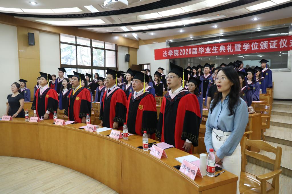 2020年7月2日下午,法学院2020届毕业生典礼暨学位授予仪式在兴庆校区主A103举行。法学院2020届60余名本科、硕士、博士以及留学生参加毕业典礼,法学院王保民书记、李万强副院长、丁卫副院长、马治国教授、李晓鸣副教授和文治书院院务副主任刘恒出席典礼,共同见证2020届毕业生踏上人生的新旅程。毕业典礼由法学院学生工作专职委员张乃钟主持。