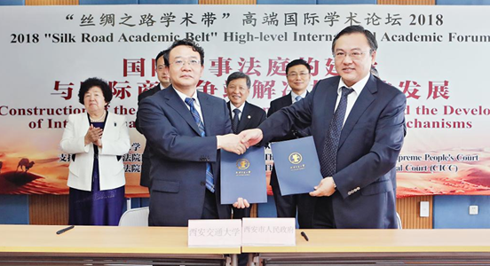 国家级“一带一路”国际商事法律服务示范区是陕西省、西安市和最高人民法院、司法部等国家有关部门在西安交通大学建议基础上决定建设的我国第一个也是目前唯一一个国家级法律服务示范区。2017年7月,西安交通大学党委依据法学院院长单文华教授及其团队的研究成果,以要报形式向最高人民法院、司法部、陕西省委省政府以及西安市委市政府提出了《关于建立国家级“一带一路法律服务与法治创新示范区”的建议》,先后得到了最高人民法院院长、司法部部长以及陕西省委省政府和西安市委市政府主要领导同志的批示肯定和支持。2018年7月,西安交通大学与西安市人民政府正式签约,决定共建“一带一路”法律服务与法治创新示范区(简称“中央法务区(Central Legal-services District,CLD)”)以及“一带一路”国际争端管理中心。