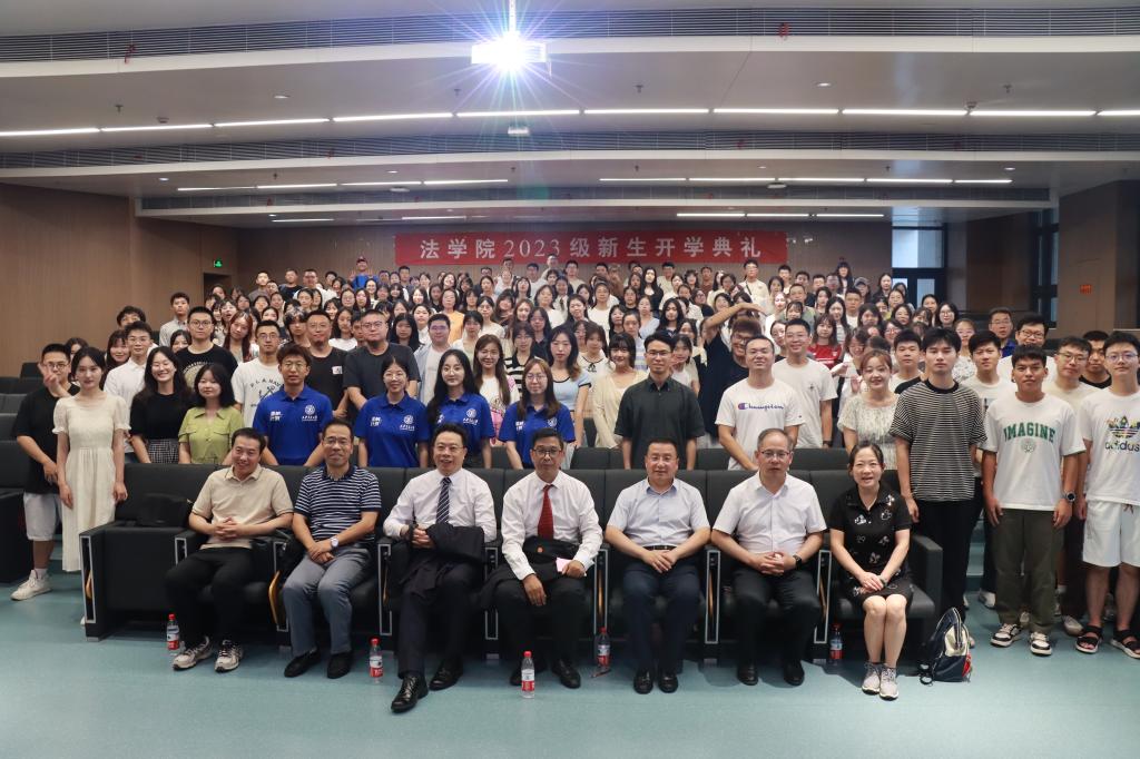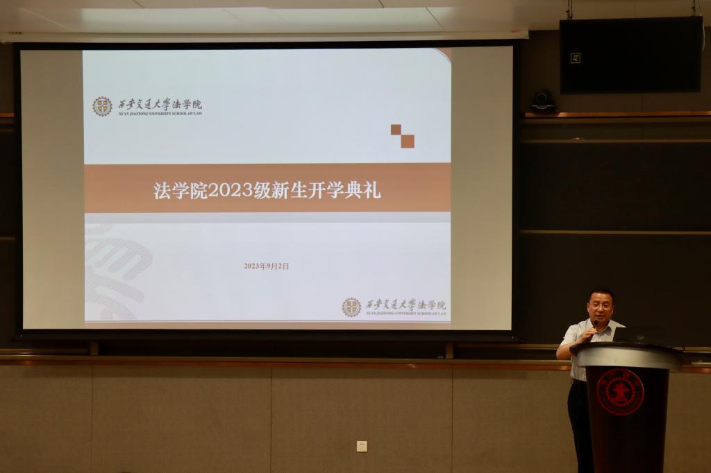9月2日下午,西安交通大学法学院2023级新生开学典礼在涵英楼东辅楼5-1E105召开。校长助理、法学院院长单文华教授,法学院党总支书记王保民教授,副院长李万强教授,副院长丁卫副教授,民商法研究所所长吴国喆教授,学生工作专职委员张乃钟老师,2023级本科生班主任苟学珍老师,学院教务老师,辅导员老师,112名硕博研究生新生、85名本科生新生,以及部分家长共同参加了开学典礼。典礼由副院长李万强教授主持。